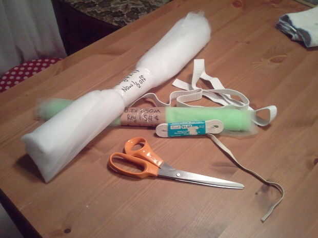 Necesitas tul en tantos colores como quieras. Se necesitan hasta 6 rollos para un tutu completo.Usted necesitará elástico, tijeras, cartulina y cinta.Paso 1: medidaMedir la cintura de su modelopor consiguiente corte elásticoMida la longitud que desee