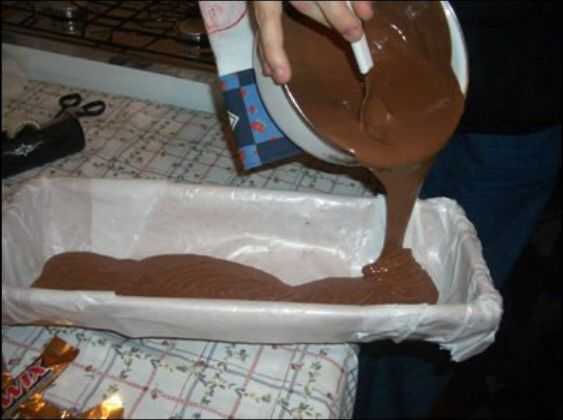 Después de separarse a casi todos el chocolate derretido el azulejo, use una cuchara y el dulce de forma. Depois, encontrar un lugar para los negocios en el congelador. Es importante que esta capa es especialmente gruesa porque ella perdurará el caramelo caliente.