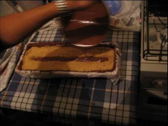 Bien formado Chocolate, caramelo y oblea a picado. Ahora sólo nos falta el sello fresco. Chocolate del derretimiento que dejó en el mismo esquema del baño maria. Hacer algunos agujeros rellenados para la corrección de chocolate mejor. Empezar a llenar los agujeros y luego en el chocolate.