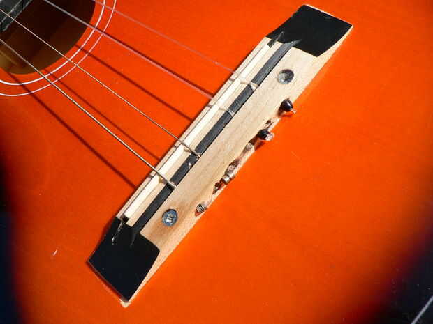 Pensé que mi guitarra $10 no valía la pena una nueva tuerca y puente así que decidido a destrozar los originales.
