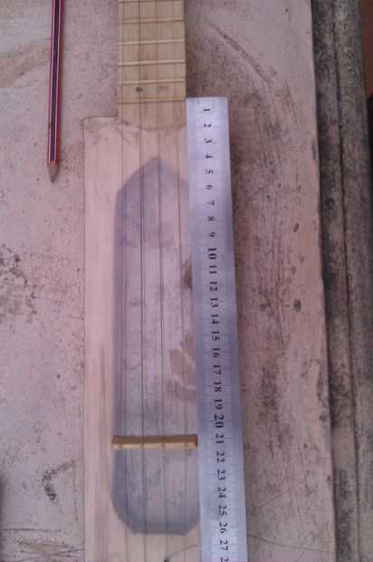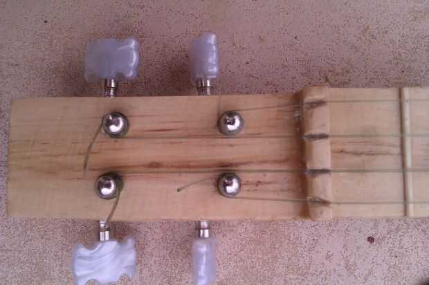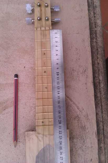 No hay metraje que los fabricantes utilizan para cuerdas de ukelele estándar pero seguramente será demasiado cortos para este plan. Cuerdas de ukelele tenor podrían funcionar. Si usted compra un conjunto de cuerdas de ukelele necesita resolver antes de empezar si encajarán o si se puede hacer encajar mediante una bisagra o algo así como un pedazo de la cola. Puede que necesite acortar la longitud de la escala y el cuerpo.