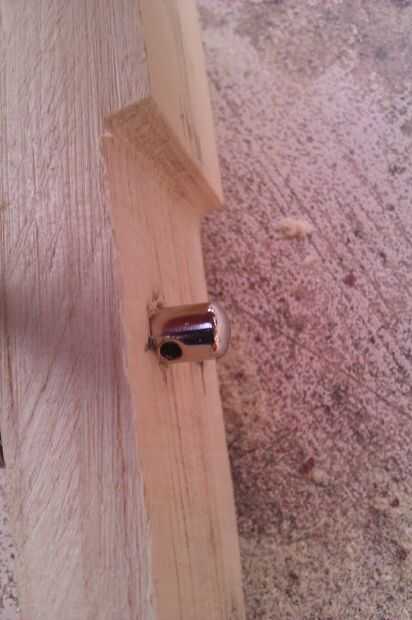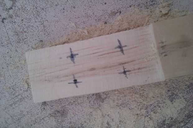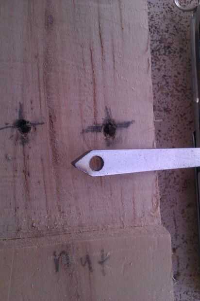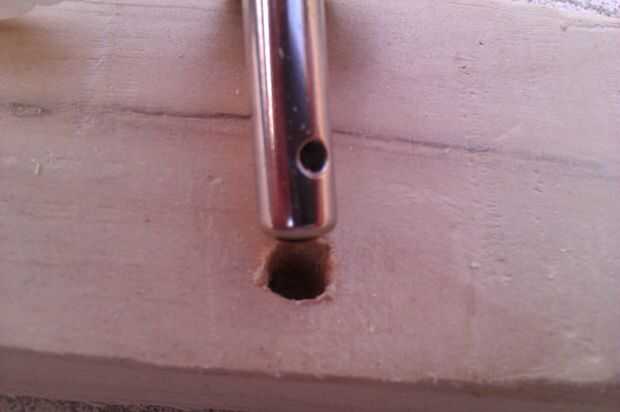 La marca hacia fuera era la parte más difícil. Este punzón afilado accesorio hace trabajo de cabezal holesmanship. Incluso me las arreglé para tener cuidado de notar cuando el punto estaba a punto de romperse a través y lo entregaron y acabó con el agujero. Esto evita que accidentalmente golpeando un chip grande de madera de la parte posterior.