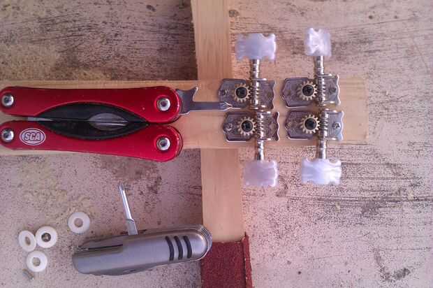 Algunas clavijas de afinación vienen con pinzas o gromets que requieren un agujero con 2 anchos. Esto es relativamente fácil si se utiliza un taladro eléctrico pero mucho más difícil si usando un cuchillo del bolsillo así que toma nota al comprar.
