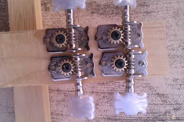 Tratar de conseguir el ukelele en lugar de guitarra afinación clavijas para este diseño como clavijas de afinación de guitarra se hacen más gruesas columnas y puede que no obtenga suficiente ángulo de rotura inicialmente sobre la tuerca. Esta se fijará por: