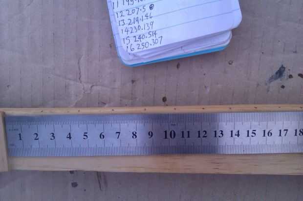 Porque estoy trabajando en una longitud de escala de tenor que perdona un poco y estoy haciendo esto deliberadamente barato estoy usando la regla de acero para medir y marcar donde deberían ir mi trastes. Tengo probablemente sólo sido exacta a dentro de una mitad de un milímetro. Esto significa estará fuera de tono por 0.5 dividido por la distancia entre los trastes, expresado como porcentaje. En la parte superior los trastes desde unos 23 mm., haciéndome posiblemente 2,5 centavos fuera de tono. En el traste 12, los trastes son unos 12 mm., haciéndome posiblemente 5 centavos fuera de tono. Teniendo en cuenta lo mal juego puedo vivir con esos números.