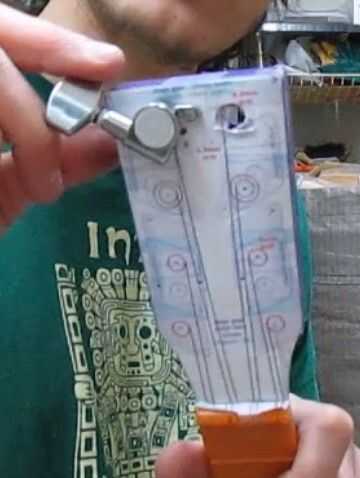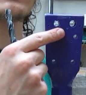 básicamente el objetivo su perforar un orificio de 9,5 mm en todas partes donde hay un círculo de 9,5 mm de color rojo (para las clavijas de afinación completa cerrada) y un orificio de 6 mm en todas partes donde hay un círculo de 6 mm de color rojo (para el ukelele original abierto las clavijas de afinación), pero en lugar de hacerlo a la vez es más seguro si les haces 1 por 1, comenzando con una broca pequeña de malla (como el taladro manual de 1 mm) , entonces poco a poco con una broca más grande y más grande. puesto en la clavija de afinación ya sólo para comprobar que el tamaño es correcto, al menos para los 1.