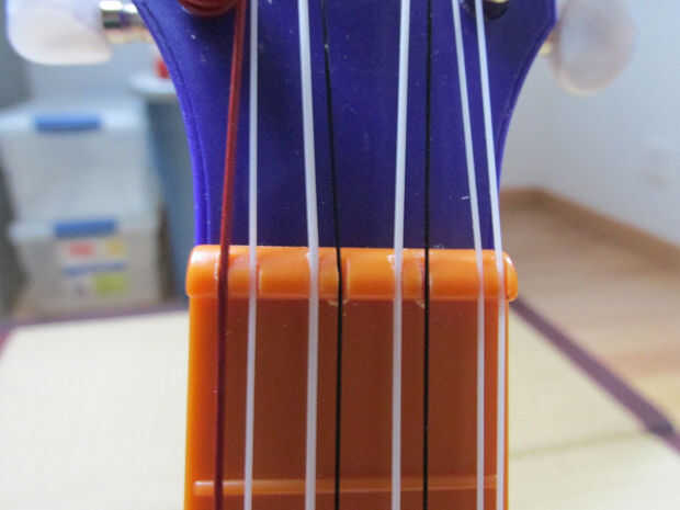 Nota especial para el makala dolphin: en la impresión, la 2ª cadena tiene un poco "<-w" debajo de él. eso significa que es una buena idea ampliar esa ranura de la tuerca un poco más a la izquierda. mantendrá a una distancia más de la cadena 1. OK disfruta tu nuevo ukulele de gizmo!