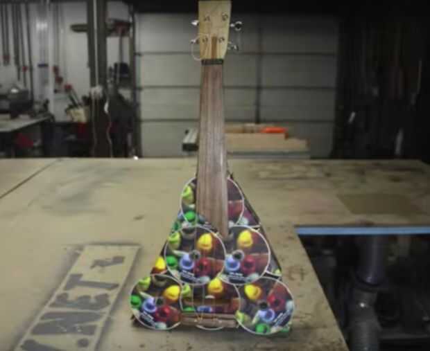 Tenía algunos viejos afinadores de guitarra puse sostener las cuerdas y tiró de las cuerdas de una guitarra tienda junky. Tardé algún ensayo y error para configurarlo pero pude jugar durante varias horas ese día. En las semanas desde que el yo, el cuerpo ha empezado a hundirse un poco pero todavía funciona. No esperaba que dure un día!
