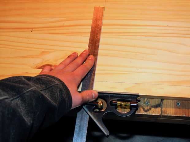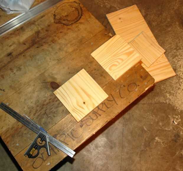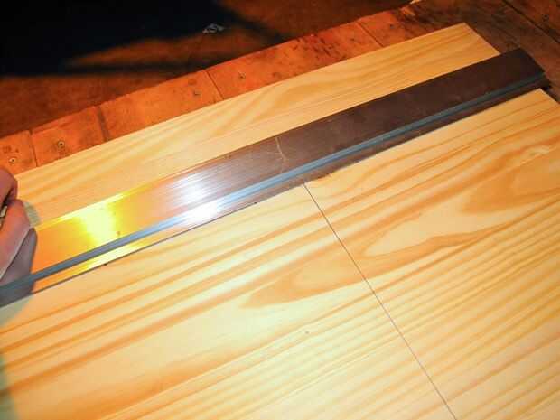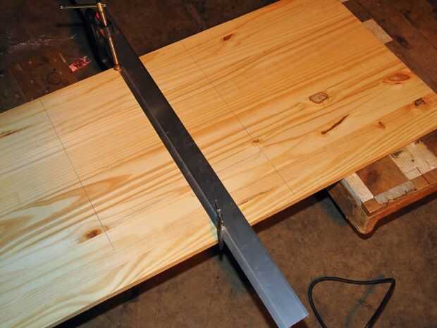 -Marcar una sección de 16 "x 16" para cortar con su escuadra. En mi caso usé a mi guía de la sierra como un borde recto para asegurarse de que todo estaba cuadrado y recto.