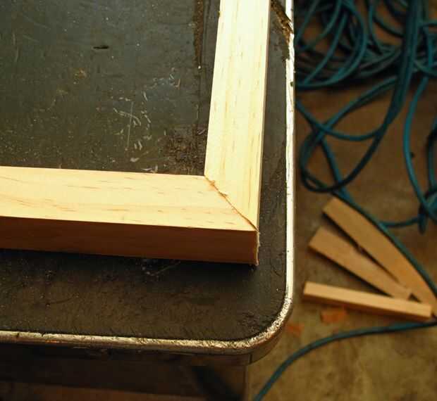-Si usted no va a utilizar un router, necesitará hacer otro 45 grados corte hacia abajo de la longitud de cada sección de 16" para facilitar la colocación de la tapa de la caja de foto en el marco de la que sólo se cortan.