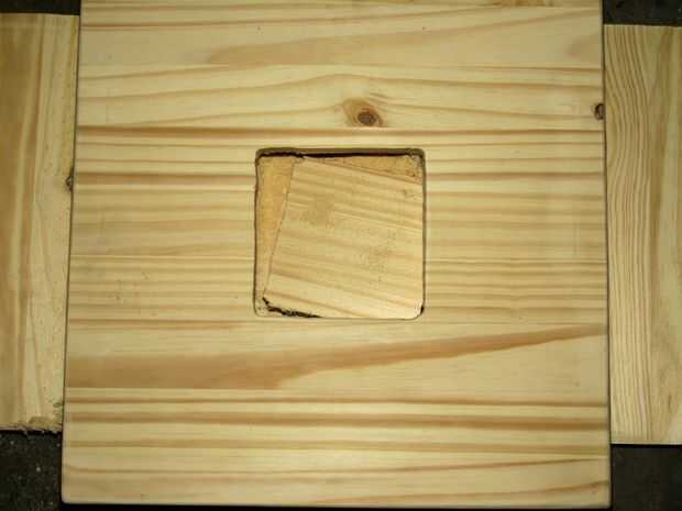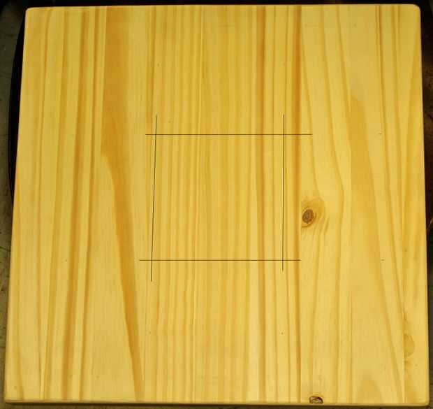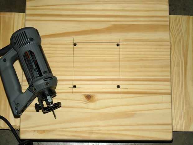 Una vez que el pegamento se haya secado, marcar un cuadrado de 5 "x 5" en el centro de la caja de la foto recién creado y perforar algunos agujeros en las esquinas. Ahora usando su rotozip, rompecabezas, etc.... Corte la sección 5 "x 5" como ahora se trata de la apertura de nuestro sostenedor del cuadro.