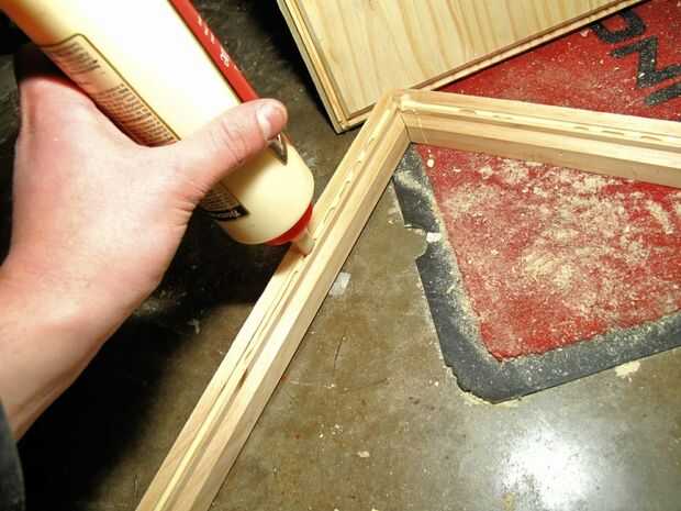 En este punto, cogí unos cuantos clavos de acabados y avellanado en las esquinas de la caja para ajustar el marco. Si no está utilizando un enrutador, necesita utilizar unos cuantos más clavos para asegurar que los empalmes son sólidos. En mi primer cuadro de la foto, he utilizado 5 clavos por conexión de tablero de la cara a tablero lateral.
