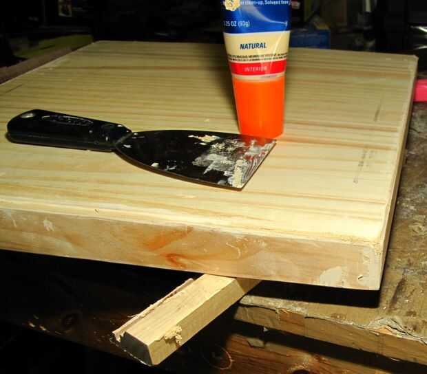 Después de lijar, te darás cuenta que habrá algunas lagunas en los bordes y esto es donde la masilla de madera viene muy bien. Exprimir algunos masilla en los huecos y alisar con la espátula. Después de esperar unos minutos, puede tomar algún papel de arena de grano mediano y suavizar bordes usted otra vez.