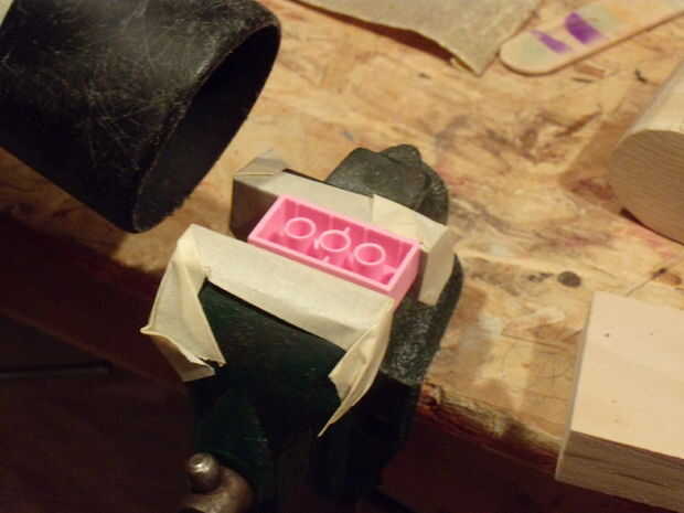 Después de haber decidido cuántos ladrillos necesita, repita los pasos 4-5 con todos los ladrillos. Paso 4: Fije el LEGO bien en la prensa. Utilizar la herramienta rotatoria para buzz a los tubos en el ladrillo, hasta llegar a la azotea del ladrillo. Tienes que ir despacio y con cuidado, o bien se daño de la broca, lastimarse o desordenar el ladrillo LEGO de forma involuntaria. No olvide usar equipo de seguridad y pide a un adulto para ayudar si usted se siente incómodo.