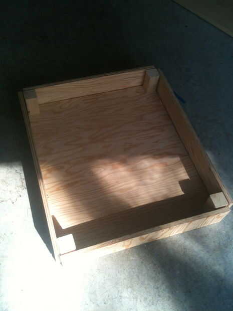 Ahora toma 1/2" madera contrachapada y recortar un cuadrado 24" x 26" luego corte dos de 3" x 24" piezas y dos de 3"x 26 piezas. Tomar 2 x 2 y cortar 4 2.5" piezas.  tomar una de las piezas laterales y perfore un agujero grande en él mina era una pulgada y media, pero podría haber sido más grande. Esto es donde se conecta la manguera de la aspiradora de taller a. Luego cortar pieza de pegboard del mismo tamaño que su base, o 24 "x 26".