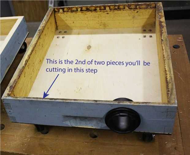 En primer lugar, uso una mesa de sierra para cortar su super medio vacío para hacer la parte superior e inferior de su abeja vacac mida el conector de la manguera y la parte interna más alta en la aspiradora de taller para determinar las profundidades de estas dos piezas. Asegúrese de cortar la super para que las articulaciones se dividen limpiamente entre las cajas y asegúrese de nota donde cualquier clavos u otros sujetadores pueden encontrarse, desde golpear a ésos él malas noticias para usted y la mesa de la sierra.