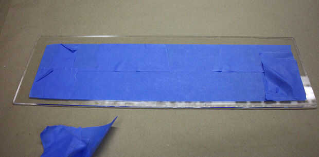 Entonces es hora de pegar la ventana de plexiglás en la placa superior. Usé cinta de enmascarar azul para proteger el Plexigas para mantener el pegamento a mi ventana. Para pegar en la ventana que utiliza un pegamento de epoxy que no registro en mi cuaderno. Pero cuando lo busqué en Google que aprendí que debo haber dado el plexiglás un poco diente por rouging para arriba con papel de lija. La próxima vez!