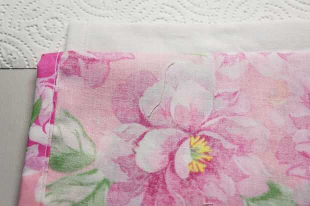 El borde de la bolsa en uno de los extremos cortos (en la tarjeta y guarnición) necesitará duplicarse encerrado como se muestra. El extremo opuesto se coserán como una costura más adelante. Para ahorrar tiempo repetir este paso con la bolsa de forro también.