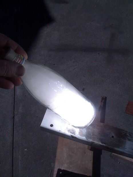 2. Coloque el brote y el tarro en el punto focal, y en 3 segundos se pondrá su brote hacia fuera algo de humo. Simplemente espere hasta que la jarra se llena y luego inhale y sostenga el humo restante con el pulgar. (no deje el frasco en el punto focal más larga de unos 15 o 20 segundos, como puede conseguir caliente lo suficiente como para romper. Si no te humo entonces, no estás en el centro.)