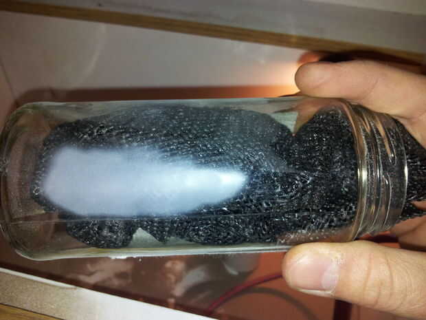 Era bastante escéptico en primer lugar, mi diseño representado el borrador de aire en su forma más básica. Francamente, esperaba sólo un spray ligero que utiliza una gran cantidad de compuesto. Para la prueba, puse la presión a 30 psi. Esto sería una presión adecuada para crear un etch, pero al mismo tiempo ser totalmente seguro teniendo en cuenta los menos óptima piezas que utiliza. Para mi sorpresa, funcionó muy bien, como se puede ver en la botella de prueba en imagen 1.