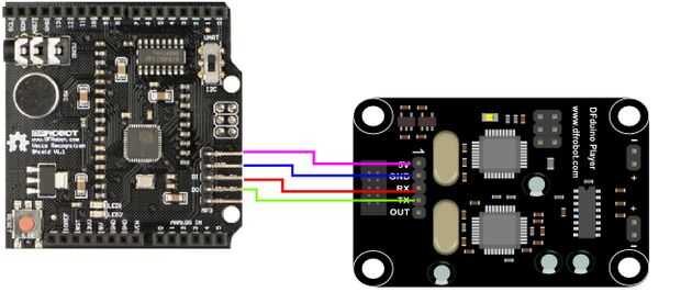 Incluso con control de voz exitosa, parece que algo falta. ¿Qué pasa si el vehículo puede responder a nosotros? Mediante la adición de un módulo de mp3 a la instalación, esto será posible. Usé un mp3 player módulo – el DFRDuino jugador.
