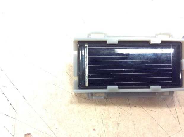 Encontrar el soporte de panel solar y el panel solar. Deslice el panel solar debajo de las barras del panel solar titular, teniendo cuidado de no dañar la pantalla o los lados. Cuando totalmente, debe oír un pequeño chasquido, lo que significa que bien se lleva a cabo. Debe verse como la imagen incluye una vez hecho.