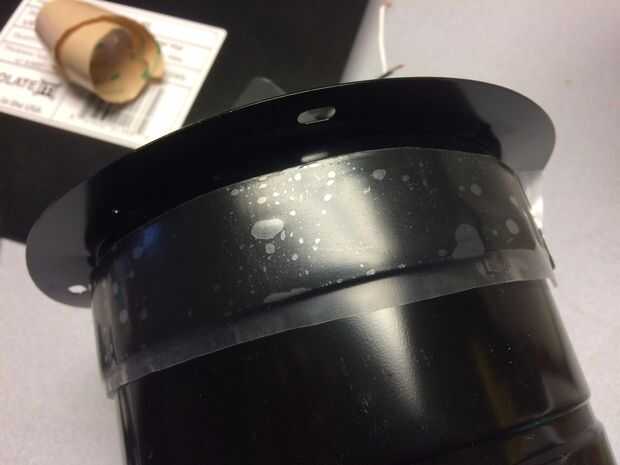 Corté 12" tiras largas que eran aproximadamente de 1.25" de ancho. Aislar, Sorbothane enciende con un plástico para evitar que se pegue a sí mismo y recogiendo polvo. Decidí dejarlo en que no es un problema ya que de todos modos no será visible. Despegue el papel adhesivo de 3 M y pegarla a la caja del ventilador. Tenga cuidado de no cubrir la placa de acceso eléctrico. Usted podría cubrir más de la vivienda, pero 1.25" ajustan perfectamente a donde quería colocar el conducto flexible.