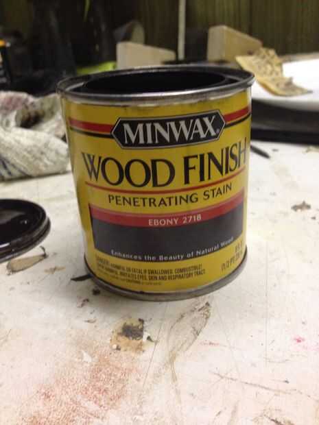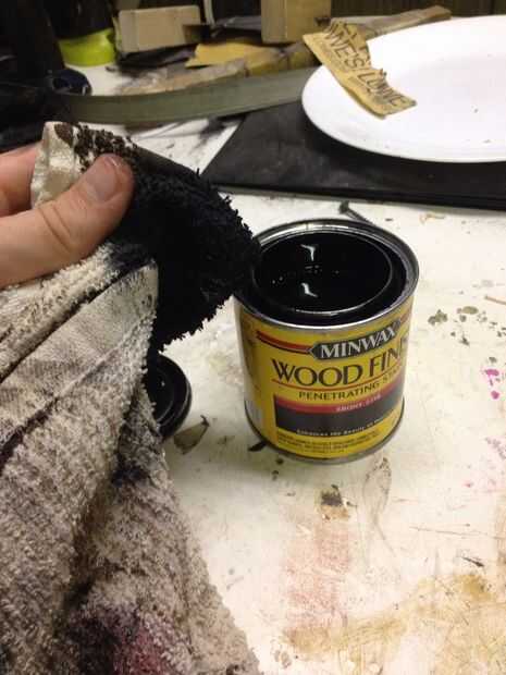 Dependiendo del color de acabado que desee, y el tipo de madera que utilizas, quizás tenga que experimentar con varias manchas diferentes. Lo que usted use, debe ser algo oscuro. Siguiendo las indicaciones de la lata, aplique el tinte. Que se vea viejo. Quizás desee hacer algunas partes más oscuras que otras, todo depende de usted.