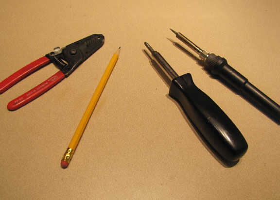 8. tornillos, trozos de madera contrachapada de 1/8 de pulgada, pegamento para madera o pegamento loco, soldadura, alambre según sea necesario.