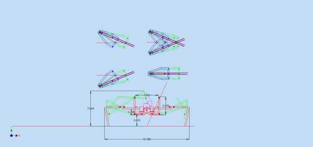 Las patas son de bloqueo en la posición hacia abajo y he añadido que algunos azul gomas para asegurarse de que bloquee constantemente. Los dos rieles quedaron largo deliberadamente en el caso que quería añadir una cámara u otros dispositivos. Arriba son dibujos de la geometría básica