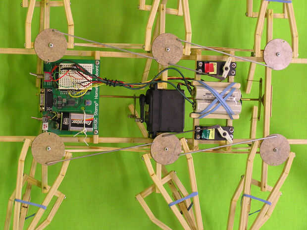 La primera foto es una vista inferior que muestra cómo los servos swing funcionan los brazos y las piernas.
