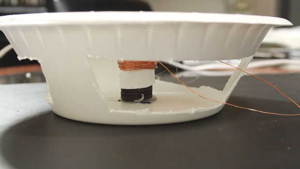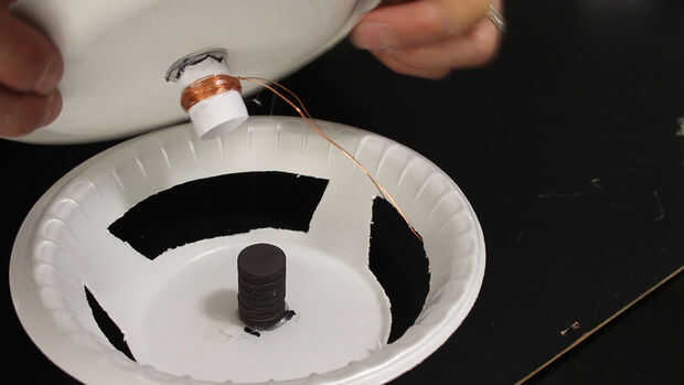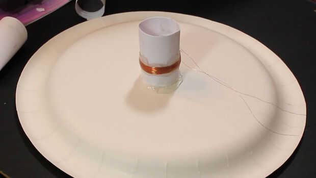Paso 7: Pegar la bobina de voz a la parte inferior de un plato de papel.