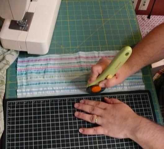 Cortar a la tela con un cortador rotatorio o tijeras.
