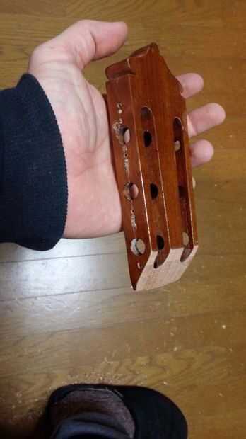 Usted tendrá que cortar un ángulo en un extremo de la contrapunta tal como se muestra, porque las cuerdas se viene alrededor de la culata de la guitarra en un ángulo muy bajo.