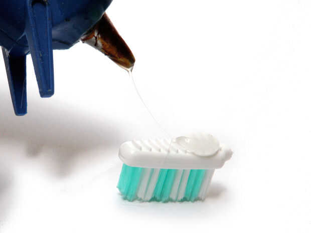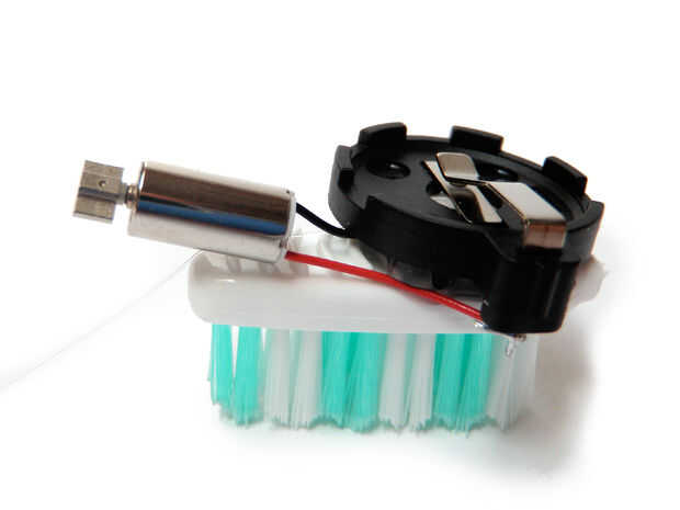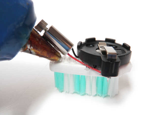 Pegamento caliente el soporte motor y la batería a la parte plana de plástico de la la cabeza de cepillo de dientes.