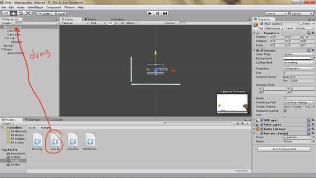 Ahora basta con aplicar el script a la cámara principal en la jerarquía y luego arrastre el parámetro script del objeto reproductor.