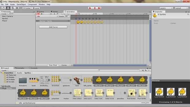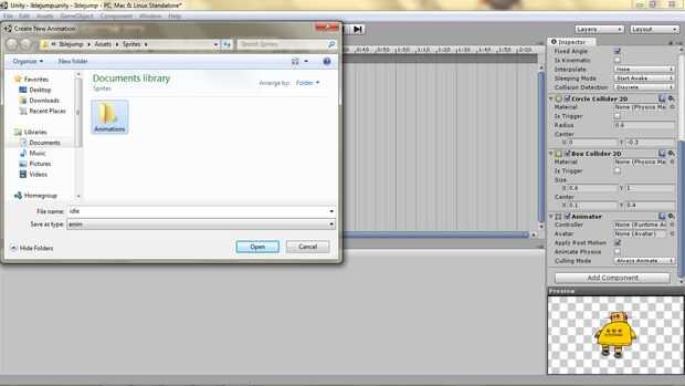 A continuación, abra su carpeta de activos/sprites y abrir otra vez el diablo ocioso. Cambio de seleccionar toda la serie de imágenes y arrastrarlas hasta la ventana de animación.