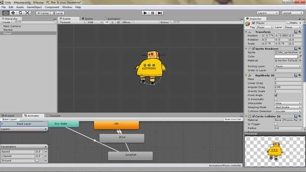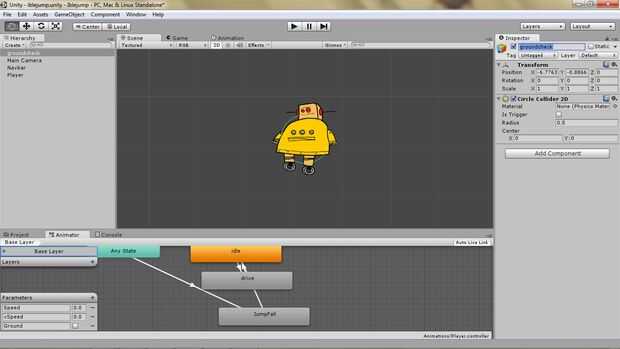 Necesitamos un estado de animación para el salto y caer y también algunas más código para control las cosas.