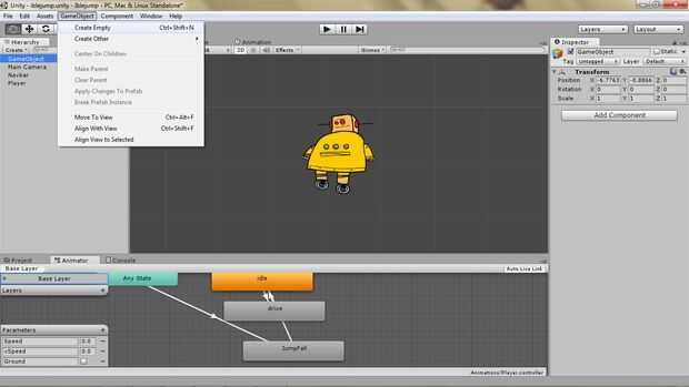 Ahora vamos a actualizar nuestro scrip para utilizar nuestros nuevos parámetros y poner el código en el lugar para hacer Robot a saltar cuando se presiona la barra espaciadora.