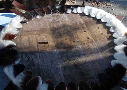 Cubrir la espalda con titebond 3 y centro de la pieza de cuero de brazo en él. Ejecute algunos tornillos adicionales a través de la pieza del brazo antes de pegar en la piel de cordero.