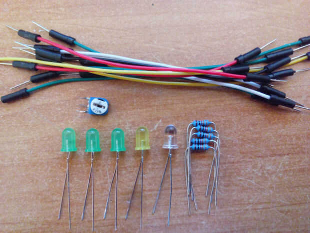 • 5 resistencias (sobre 300Ω, no tienes que ser muy exacta aquí)