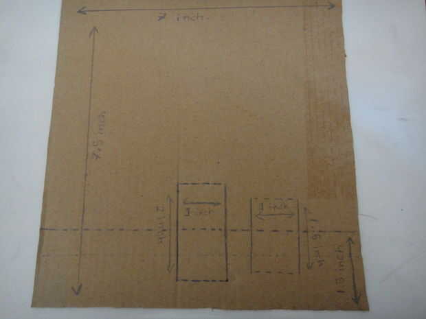 Para la base y estructura del voltímetro, pareciera estar usando la cartulina. Utilice las directrices en el Pdf o la imagen para marcar la cartulina. Corte a lo largo de las líneas audaces, doblar a lo largo de las líneas discontinuas. Debería ver algo como la imagen dada.
