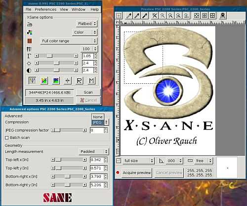 Mi software de escaneado, como mencioné, es SANE: escáner de acceso ahora fácil. Mi programa de gráficos es el programa de manipulación de imágenes GNU, o The GIMP.