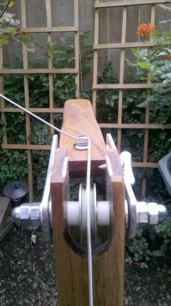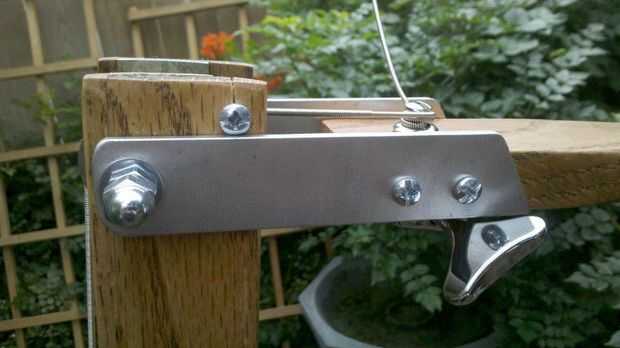 Las tuercas pueden apretarse hasta ahora pero lo suficientemente suelta para que la manija se mueve libremente. Luego terminó las varillas roscadas con dos tuercas. Por último, tiene que haber un tornillo tapón corto en el lado del cuerpo para evitar que la palanca whammy moviendo sobre la parte superior como se muestra en la imagen. A pesar de taladrar un agujero piloto en primer lugar, al final de la madera todavía dividida en la mía si te fijas bien en la foto. Obviamente, debo haber taladré un agujero piloto mayor y generosamente había deducido cinco puntos de mi calificación final para este error aficionada. Sólo pongo un tapón en un lado que funciona muy bien pero carece de simetría pero no quería arriesgarse a perder más puntos.
