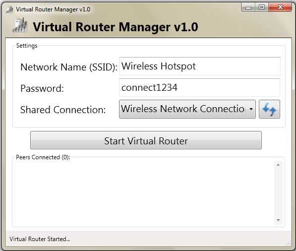 Paso 6: Configurar tu punto de acceso inalámbrico y haga clic en "Start Virtual Router".