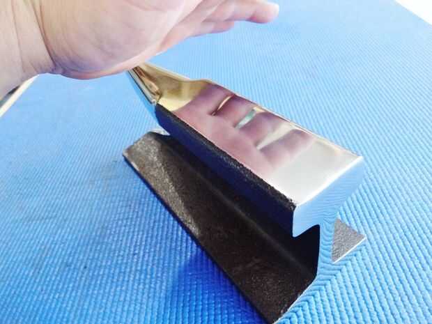 Estaba hecha de una pieza de fino vía férrea. Sin la base de registro, el yunque pesa aproximadamente 10 libras. Planeo usarlo para golpear varios trozos de metal caliente y frío, ajuste de ojales, sellado de cuero, y básicamente cualquier tipo de ligeros golpes o aplanar puedo quiero hacer.