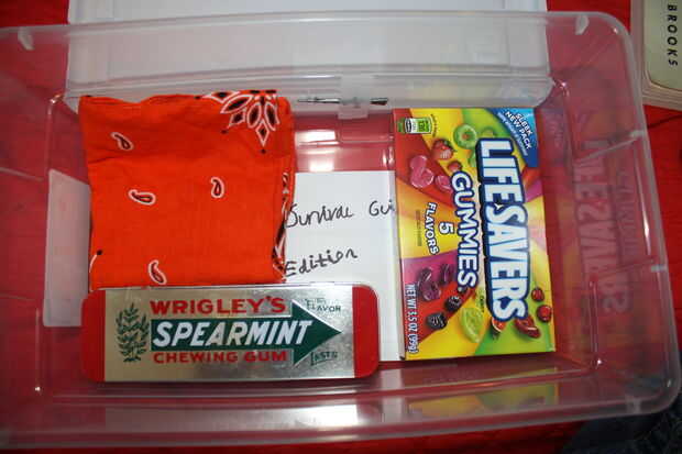 esto es un regalo poco rápido surgió para el cumpleaños de un amigo, fue un éxito con él y los demás que pensé compartir. : 0) He incluido una supervivencia/primeros auxilios kit que se puede encontrar aquí. Pañuelo Un bloc de notas y lápiz y un sacapuntas. (No foto) Gomitas de ahorradores de vida Una "pistola" Y una guía de supervivencia de bolsillo zombiet.