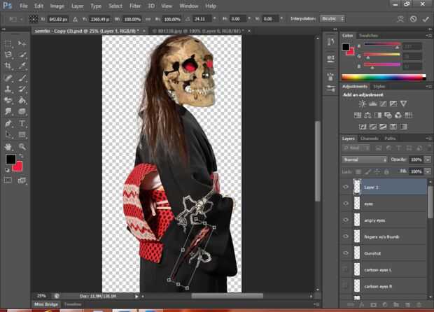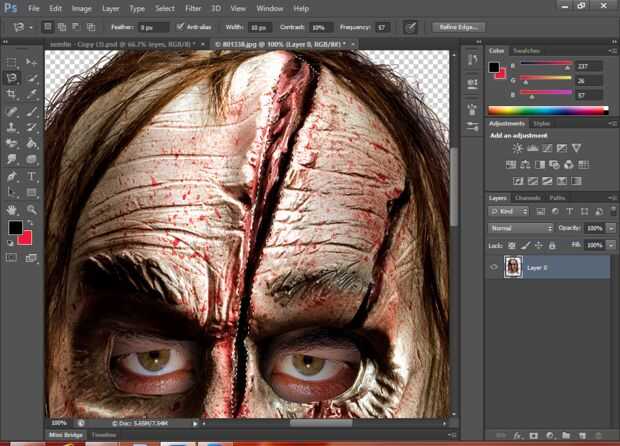 Para crear un buen aspecto del zombi mantener los efectos(rasgado tela efecto y la herida).