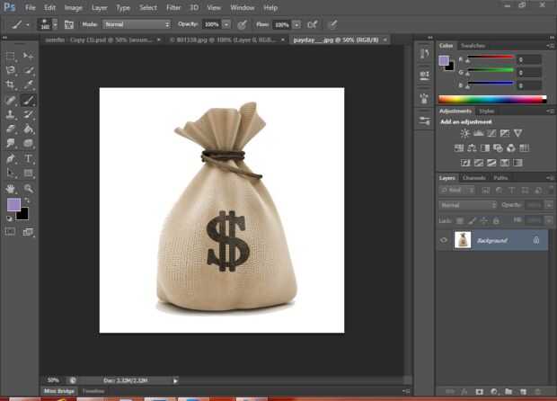 Abra la imagen del bolso del yute seleccione la herramienta Tampón de clonar y mientras mantiene Alt Seleccione un punto.
