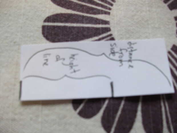 A continuación, dibuja dos líneas en tus prendas. Mina eran de 1,5 cm (1/2 pulgada) de los lados y unos 2cm (0,75 pulgadas) desde la parte superior/inferior. Trazar las líneas en el opuesto para que un espacio es en la parte superior y un espacio en la parte inferior. (Por favor mirar la foto, no puedo explicarlo muy bien: D) También hice una pequeña regla de papel de desecho para no tener que medir cada uno.